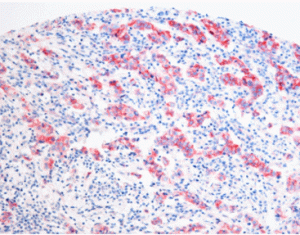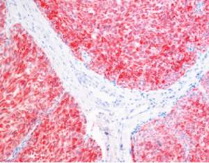 Basic dark stain reagent kit can be used for an alkaline phosphatase-labeled immunohistochemical detection system. When alkaline phosphatase reacts with this substrate solution, it can catalyze the substrate to produce dark red insoluble precipitates, which makes the positive expression in the tissue showed red to identify the results easily.
