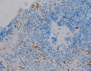 HRP-blue stain reagent kit can be utilized for an immunohistochemical detection system labeled with horseradish peroxidase. When horseradish peroxidase reacts with this substrate solution, it can catalyze the substrate to produce blue insoluble precipitates, which makes the positive expression in the tissue showed bright blue to identify the results easily. When utilizing this staining solution, samples should be sealed in the slice with water - based mounting medium.After the slice are dried, the secondary sealing can be sealed with neutral balsam to preserve the staining results for a long time.