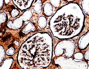 Meanwhile,it is also sensitive to all kind of fungal stains and easy to be found even there is a small amount of fungi. It can clearly present that the basement membrane in nephropathy ,mostly to be utilized for observing the glomerular capillary basement membrane during inflammatory injury such as fracture and hyperplasia , folding and other forms of change.